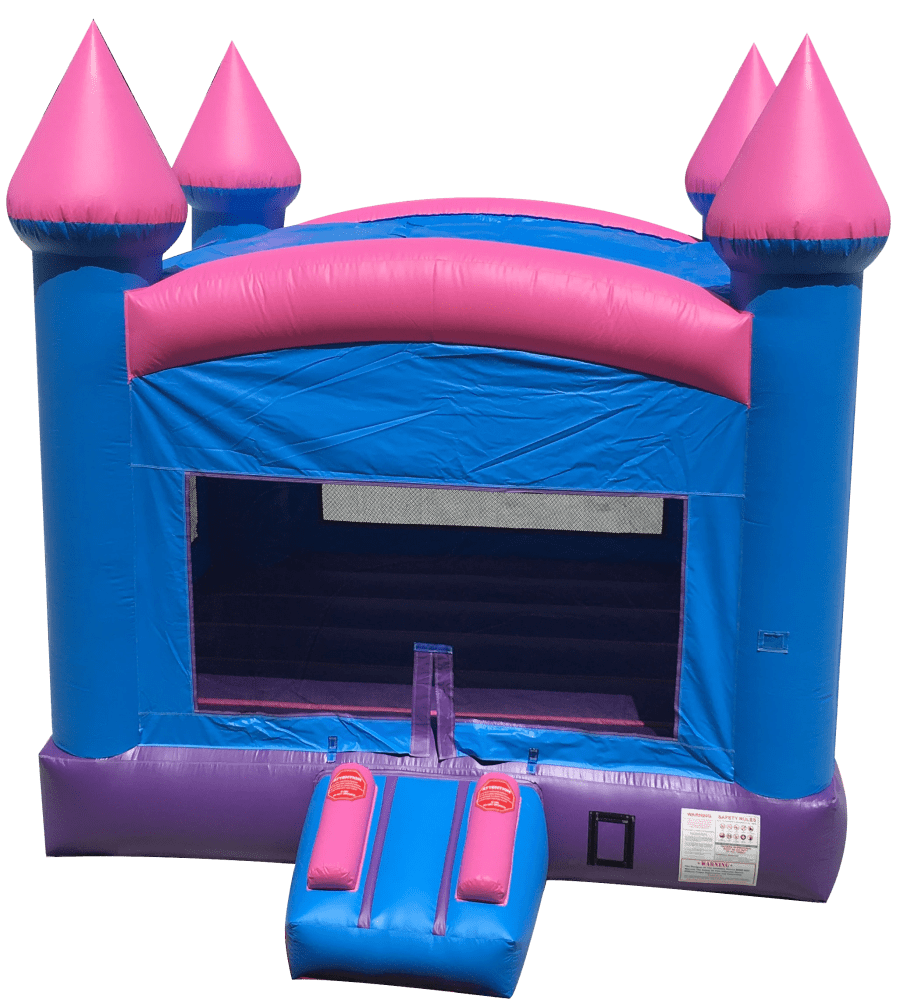 This colorful inflatable is perfect for big and small gatherings, so whether it's your child's backyard birthday party at home or a family reunion, place this bounce house there and let there be delight. The Pink Castle Bounce House is a perfect bounce house for the little queen's party! Your little girl will love it! Fun and safe for her & the birthday party guest. This mainly pink and purple bouncing castle rental is the gem of the kingdom, and will stand out at any event.