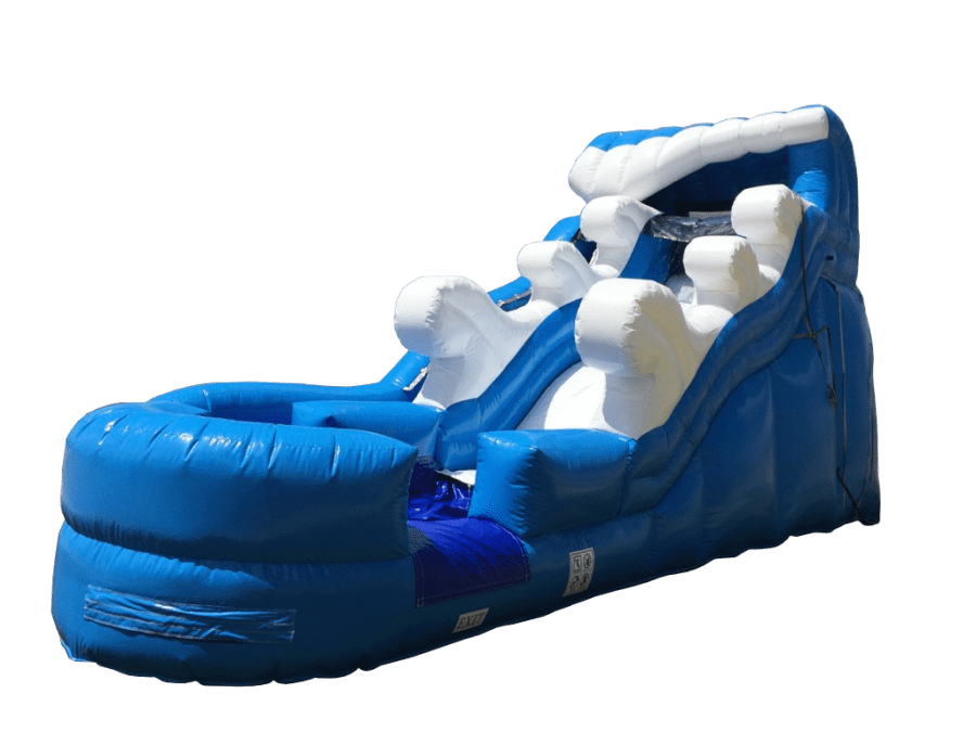 Tackle the wild surf on the 16' Super Wave Inflatable Water Slide. This 16' tall slide is a real crowd-pleaser, providing refreshing fun and thrills to kids of all ages (and maybe a few adults, too). With its gender-neutral colors, this versatile inflatable can be employed for any event! Try out this inflatable slide on a beautiful sunny day by simply connecting a standard garden hose to the built-in misting system and dive into some refreshing relief from the summer heat! All of our inflatable slides are designed with children's safety at heart, featuring an inflated landing zone with built-in drains that keeps the water level low enough for a good time, but safe enough for kids of all ages.