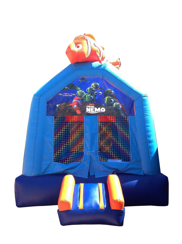 Rent the Finding Nemo Bounce House to take the kids to the drop off point with Nemo and his fish tank pals Gil, Deb and Bubbles. Race while jumping on jelly fish heads with Dory and Marlin or just paddle around with Squirt, the sea turtle. Bruce will be there too, but don't worry we told him "Kids are Friends, not Food." Jump for joy inside this bounce house rental.