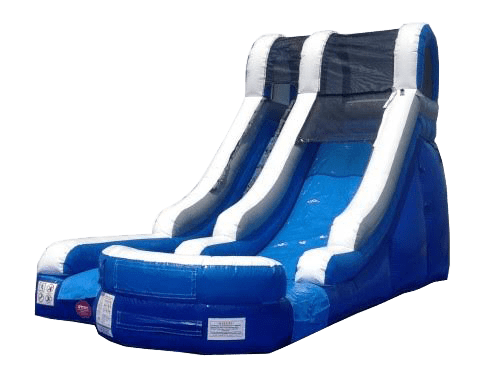 Start your party off right with Party Zone's 30ft. long x 17ft. tall wet and wild, Blue and White Slide. This vibrant slide is available wet or dry to ensure the most fun experience for kids of all ages to enjoy. We offer delivery, set-up and pick-up services so all you do is enjoy your time and soak up that summer sun.